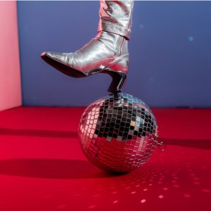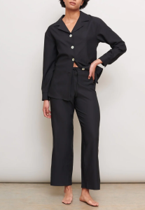 Double down on some special accessories to heighten your holiday look. Whether a sequin beret, this season’s on-trend silver boots or some fabulous oversize costume jewellery pieces (charity shops often have a great selection), choose a few key pieces that can elevate your existing wardrobe without fuss. How about taking a t shirt and a favourite pair of jeans and transforming them by rolling them up to reveal the aforementioned silver boots, and accessorising with some oversize drop rhinestone earrings? Instant party energy! Or use a simple pullover dress as a base and raise the bar with a slim metallic belt and an oversize starry wrap to set it off. Try tapping into the ‘PJs as outwear’ trend and choose a simple pair in black or cream, add in some uber comfy flat, feathery slides and a handful of cocktail rings and you’ll be the most stylish (and comfortable) belle of the ball.