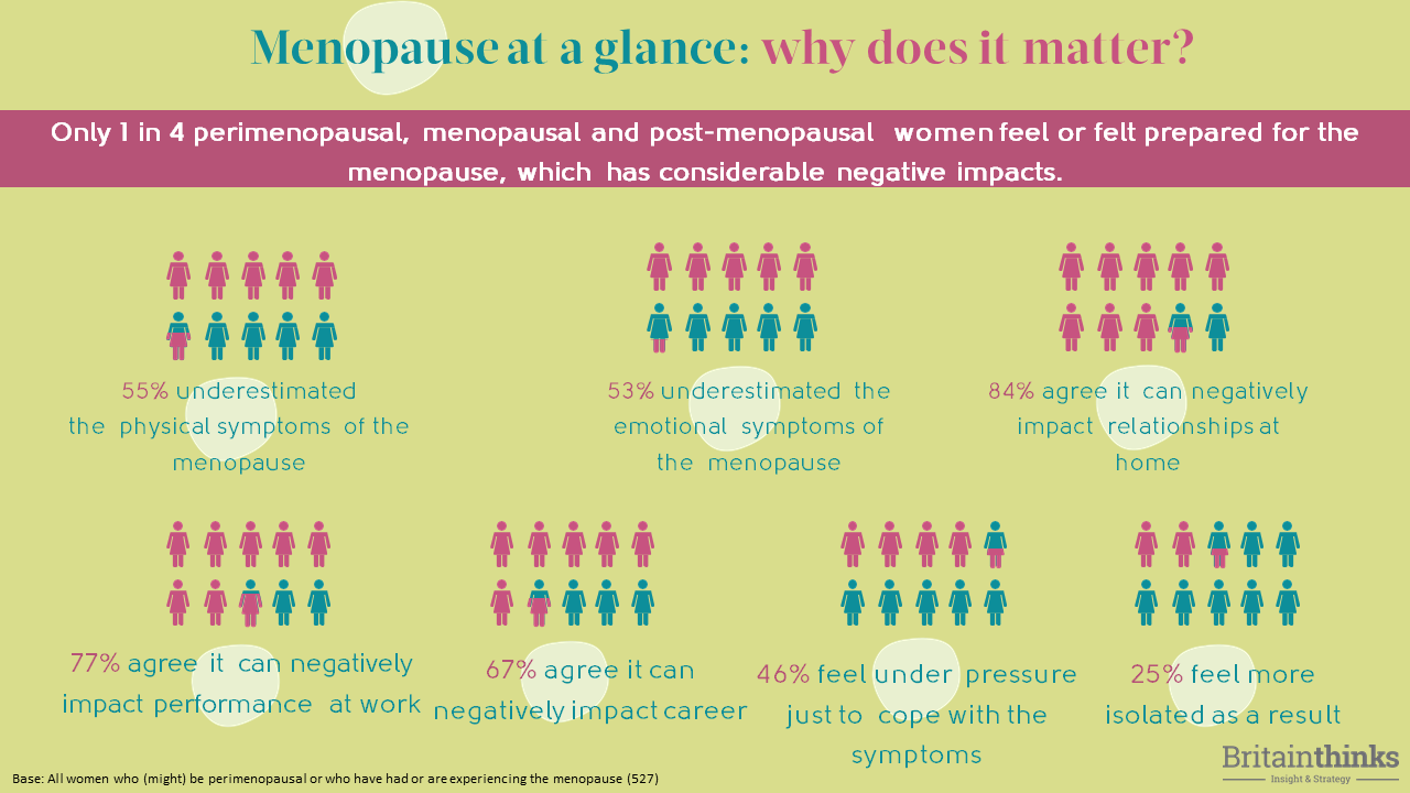 Drawing on this research, we have worked with BritainThinks to create a manifesto setting out what we believe needs to change to improve the experiences of the millions of women who are going through the menopause transition: