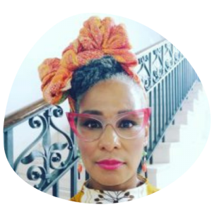 Inimitable Karen Arthur, host of the super-successful Menopause Whilst Black podcast recently featured in the Channel 4 documentary on the menopause with Davina McCall. When she’s not interviewing inspirational women, she’s busy as a fashion creative, model and speaker. Karen is 59 and lives in South London.