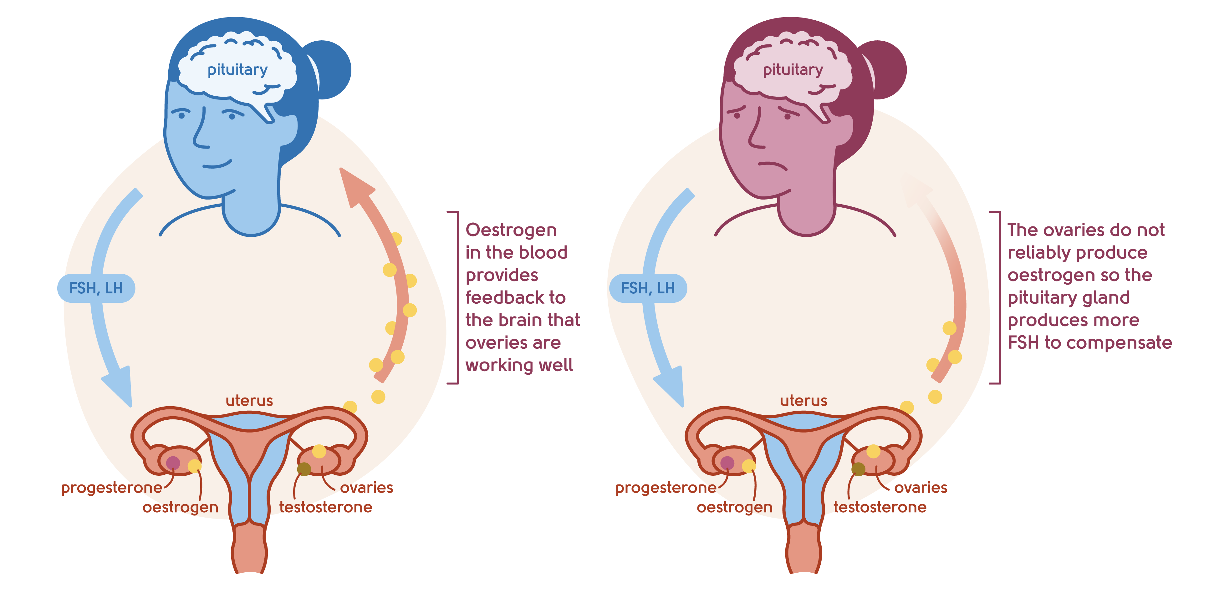 Illustration to show the feedback mechanism of the ovaries and the brain